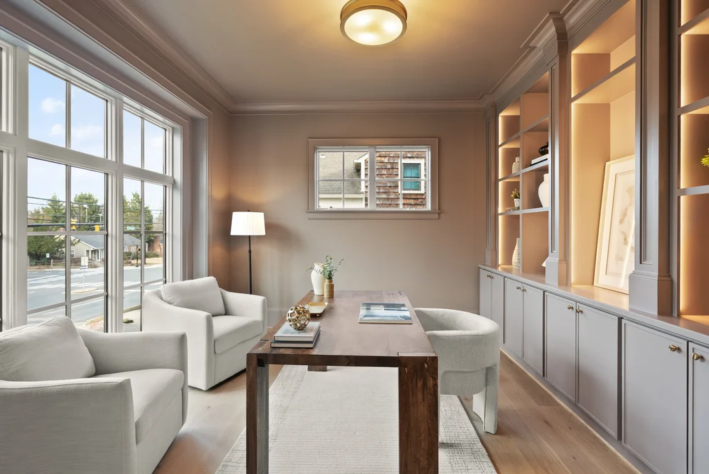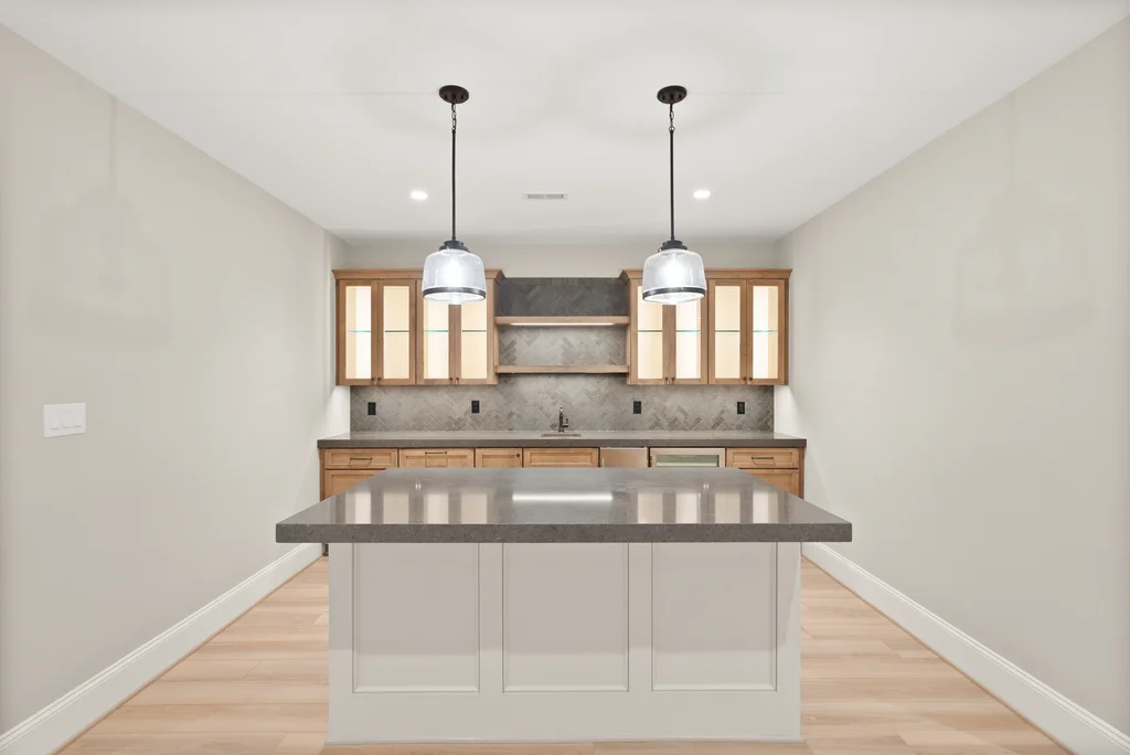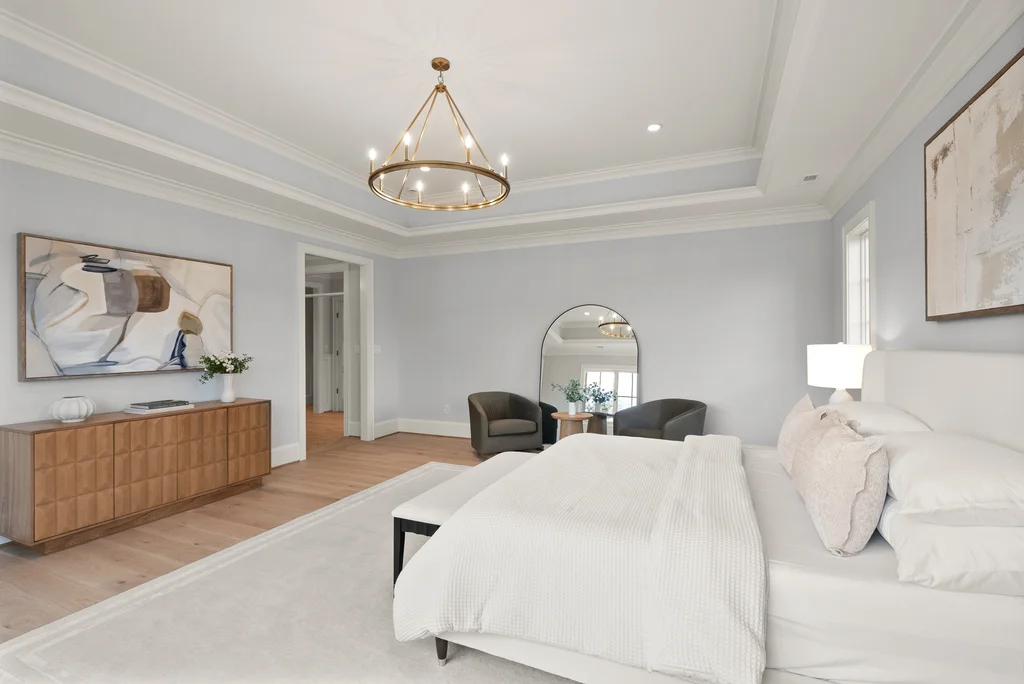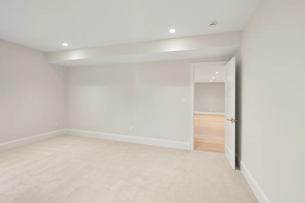 The lower level is designed for entertainment and relaxation, offering an expansive recreation room with space for a media area and game room, a wet bar with seating, and a private bedroom suite ideal for guests or a second home office. A dedicated exercise room adds to the home’s exceptional functionality. Optional elevator for all three levels.