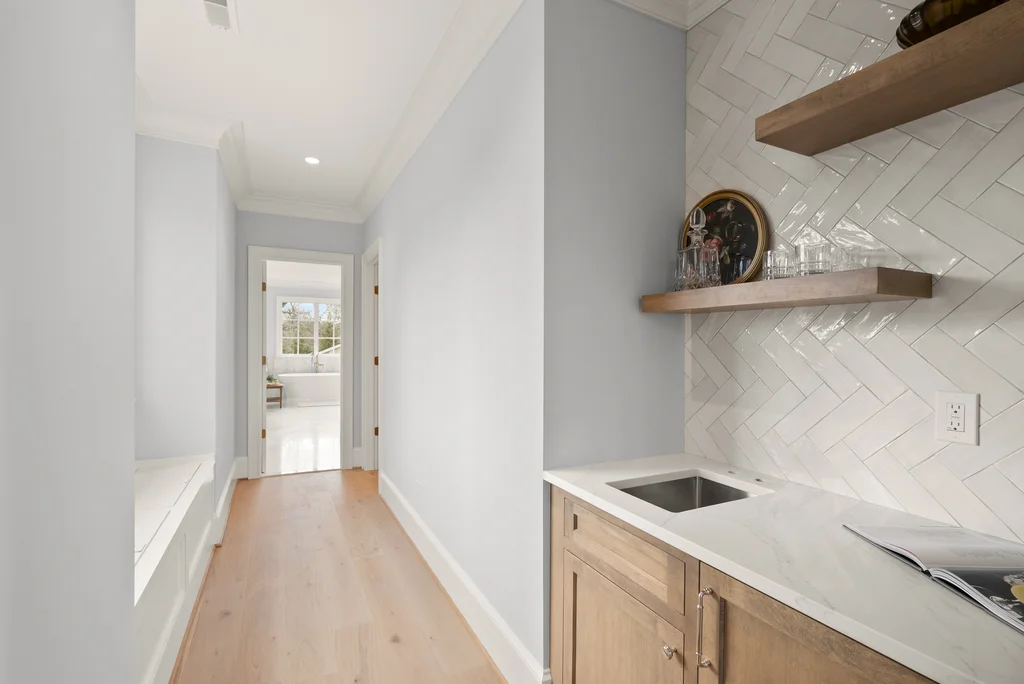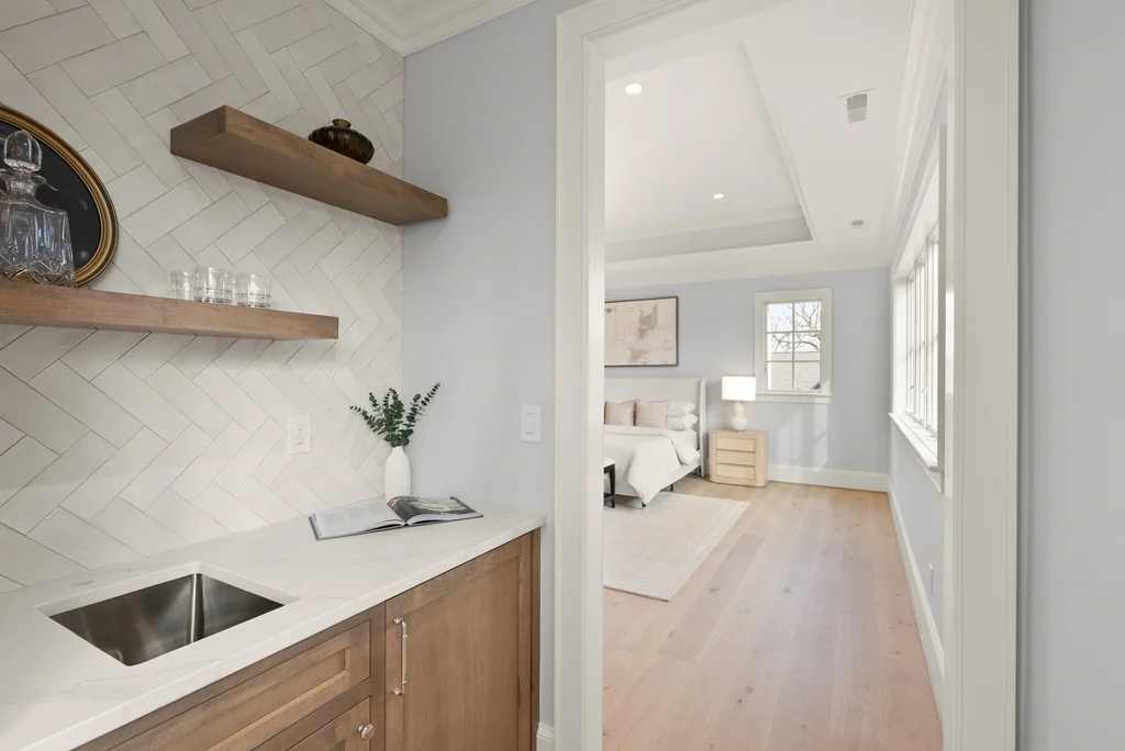 Upstairs, the luxurious primary suite is a true retreat, featuring a coffee bar, a show-stopping custom walk-in closet, and a spa-inspired bath with double vanity, a frameless glass shower, and a freestanding soaking tub. Three additional bedrooms—each with private en-suite baths and custom walk-in closets—along with a conveniently located laundry room complete the upper level.